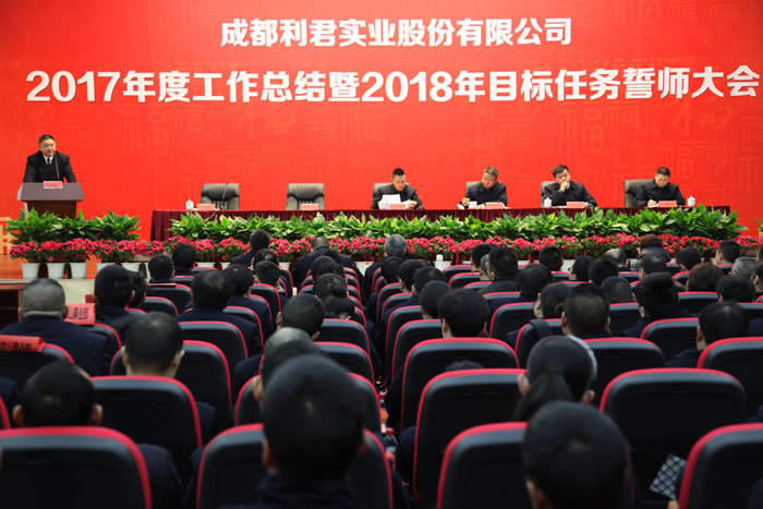 2018年2月9日,成都利君實(shí)業(yè)股份有限公司在成都市龍泉驛區(qū)利君科技公司員工禮堂組織召開(kāi)了2017年度工作總結(jié)暨2018年目標(biāo)任務(wù)誓師大會(huì)。