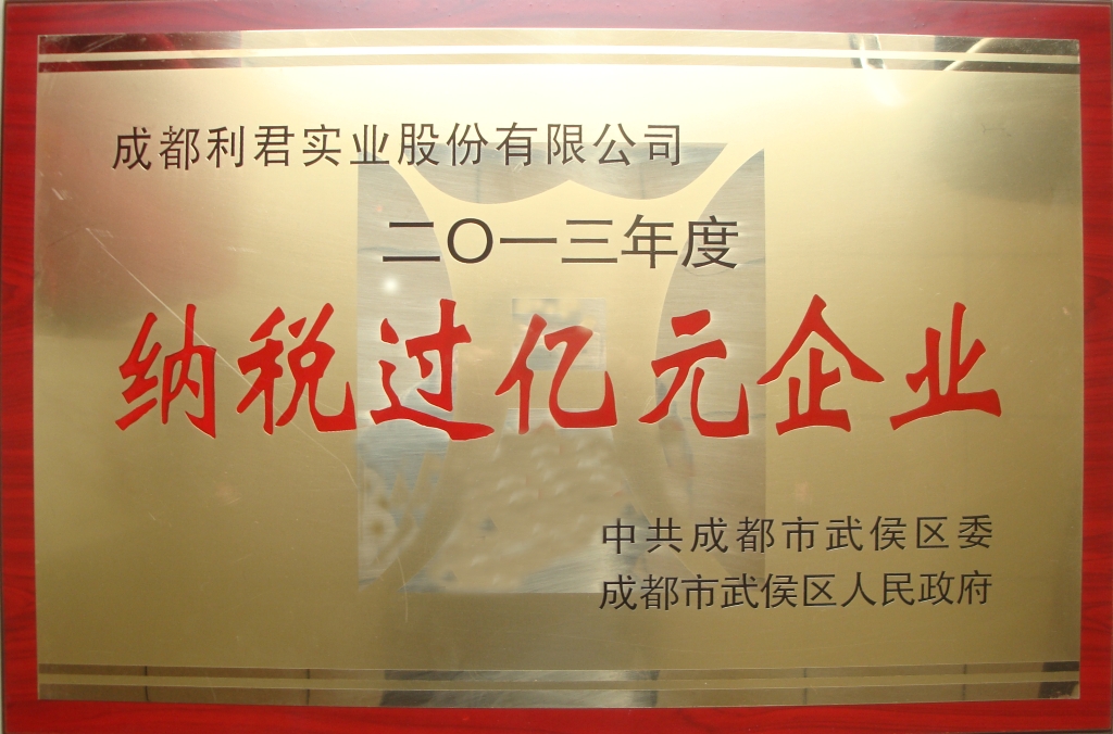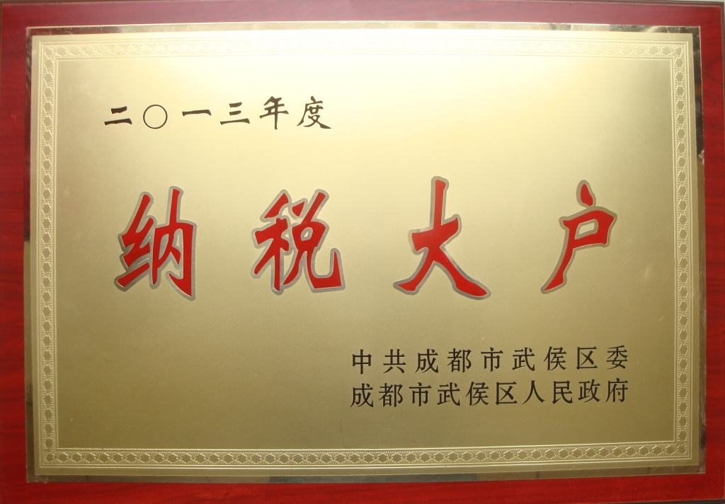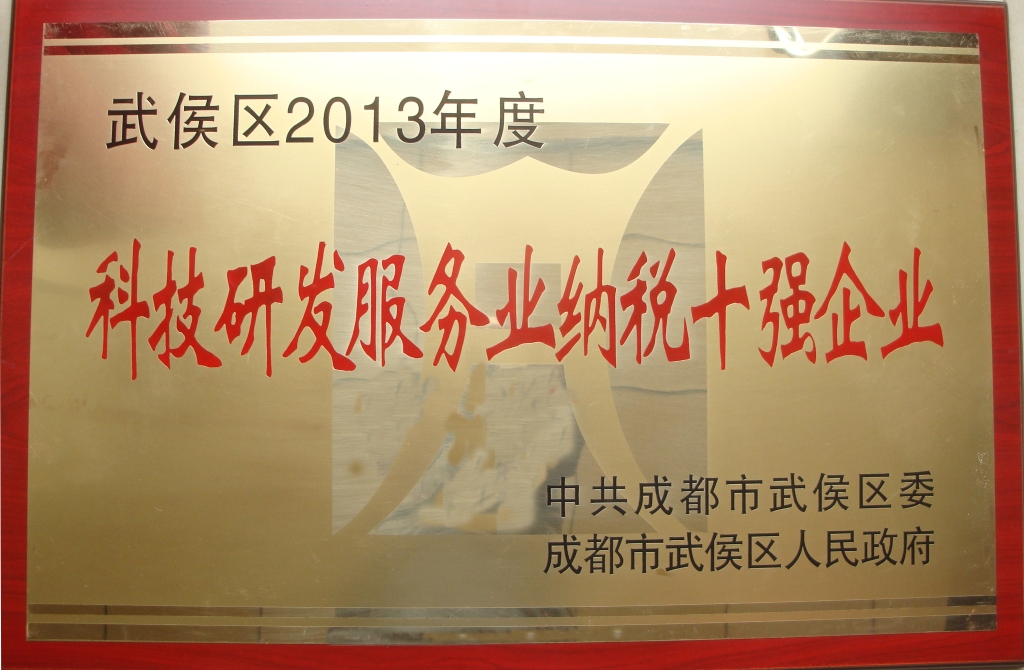 2014年3月21日武侯區召開了2013年度納稅大戶表彰大會。公司榮獲了“科技研發服務業納稅十強企業”、“納稅過億元企業”、“納稅大戶”三項殊榮。