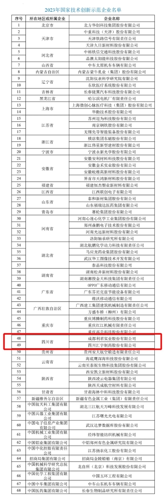 工業(yè)和信息化部近日印發(fā)通知,公布了2023年國家技術(shù)創(chuàng)新示范企業(yè)名單,四川2家企業(yè)上榜,成都利君實業(yè)股份有限公司榜上有名。