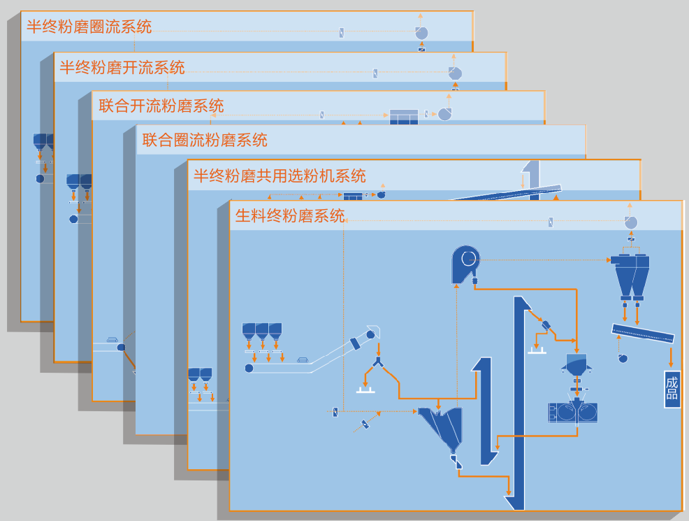 利君的水泥粉磨工藝系統采用輥壓機及配套的成套設備,可與球磨機配合或自成系統組成各種類型的工藝系統,滿足不同的客戶需求。